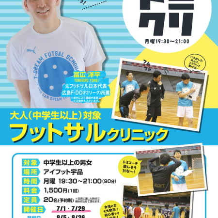 2019/06/25トミクリ(中学生以上を対象にしたフットサルクリニック)7月1日開催 定員に達したためキャンセル待ちとなります。